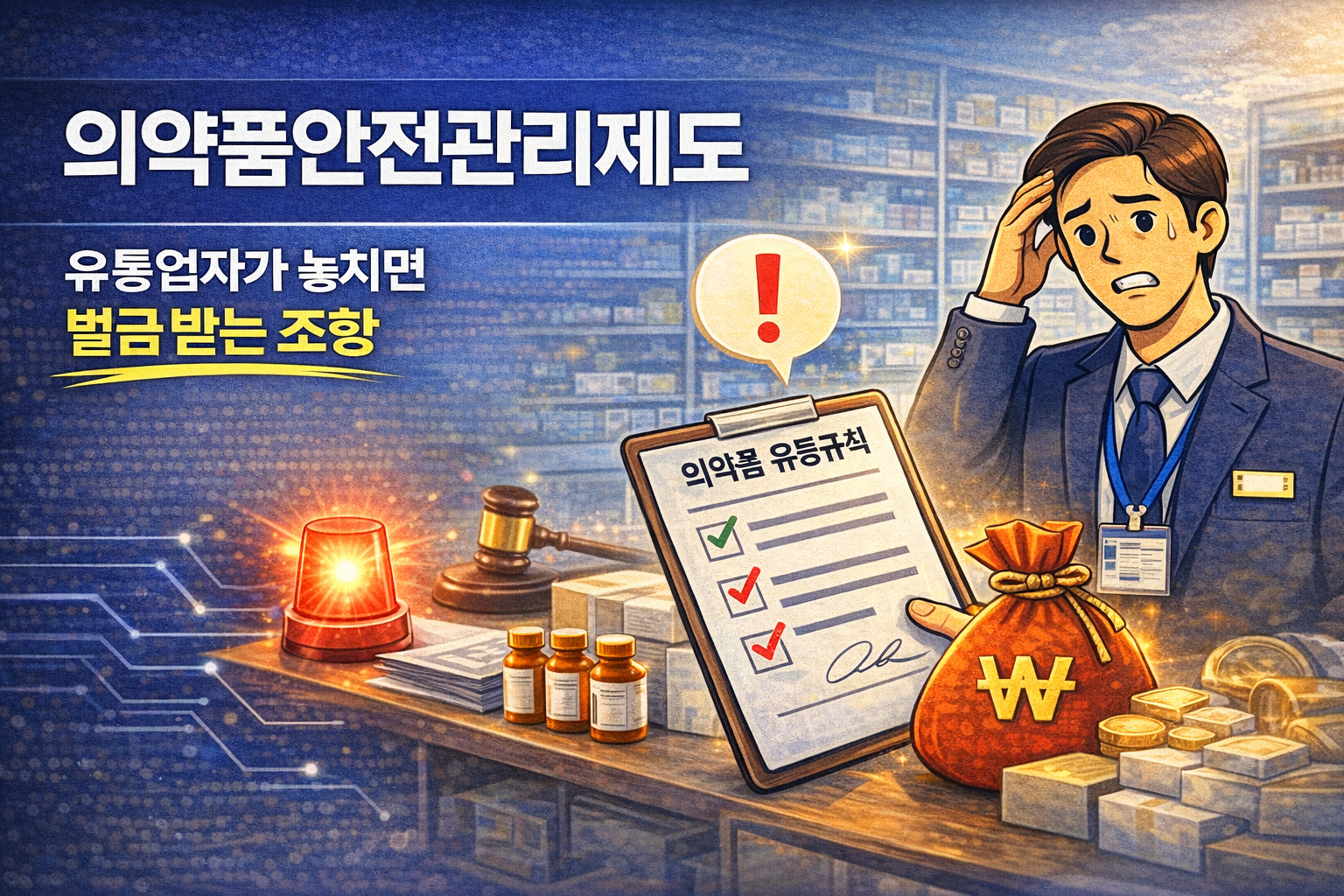 의약품안전관리제도는 의약품의 제조 → 유통 → 판매 → 회수까지 전 과정을 관리해 국민의 생명과 건강을 보호하기 위한 규제 체계입니다. 특히 의약품 유통업자(도매상, 위탁물류, 온라인 중개 포함)는 판매자가 아니라 안전관리 의무 주체로 규정됩니다. 즉, 고의가 없어도 관리 미흡만으로 벌금·과태료·영업정지가 발생할 수 있습니다. 의약품 유통업자에게 적용되는 법적 지위약사법상 의약품 유통업자는 다음을 포함합니다.의약품 도매상의약품 유통·보관 전문업체병원·약국에 납품하는 중간 유통업체일부 온라인 플랫폼 기반 유통 구조이들은 모두 의약품 유통질서 유지 의무를 부담하며, 식품의약품안전처(식약처)의 정기·수시 점검 대상입니다. 유통업자가 가장 많이 적발되는 벌금 조항 TOP 5① 의약품 유통기한·보관기준 위반(약..
